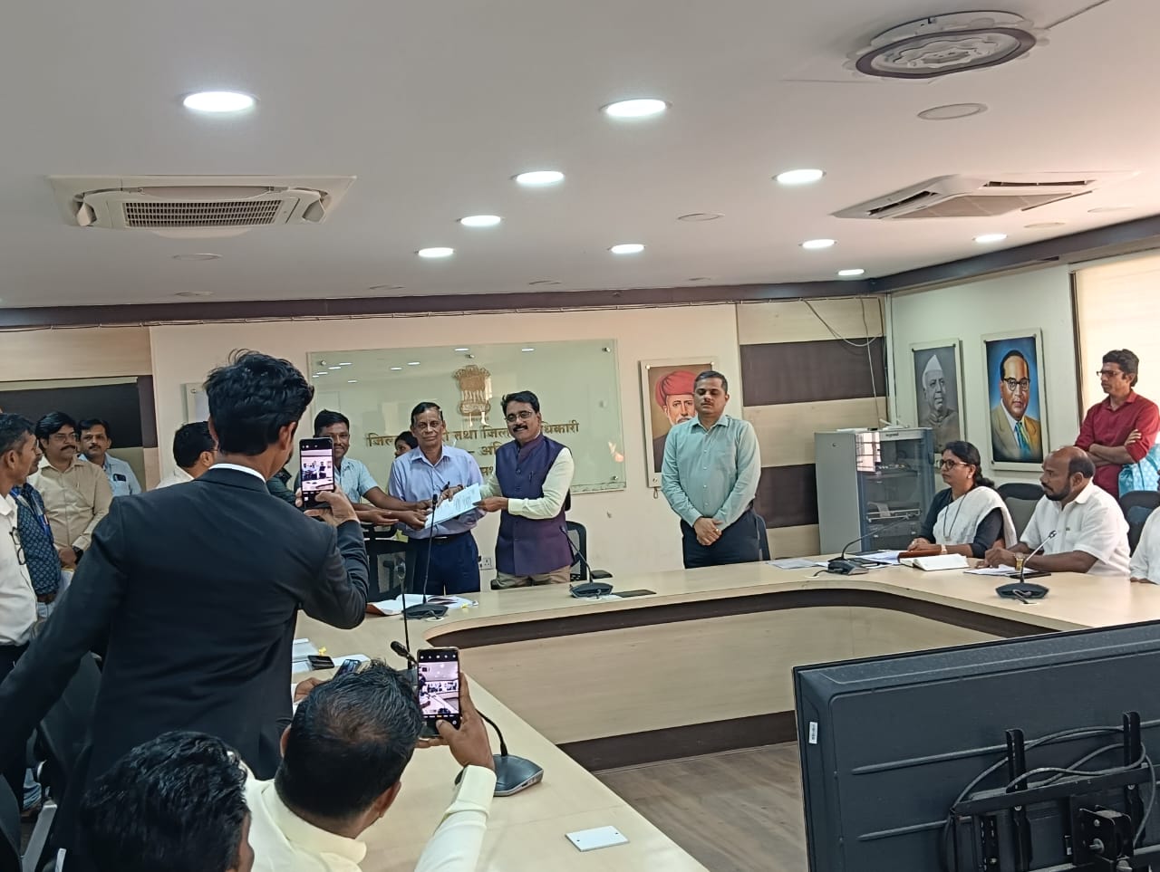 कायदेशीर प्रक्रिया पूर्ण केल्याशिवाय जे.एस.डब्ल्यू. कंपनीच्या 400 के. व्ही. भार वाढविण्याकरिता उच्चदाब पारेशन वाहिन्याचे मनोरे उभारण्यासाठीची पुढील कार्यवाही करु नये. अशी तंबी उप जिल्हाधिकारी श्रीकांत गायकवाड यांनी संबंधित अधिकार्यांना दिली आहे. 220 के.व्ही.नागोठणे एस.पी.सी.एल. वाहिनीच्या तार (कंडक्टर) बदलण्याचे काम तसेच जे.एस.डब्ल्यू कंपनीला 400 के.व्ही. विद्युत पुरवठा करण्याच्या वाहिनीचे काम करत असताना मनोर्याखालील बाधित जमिनीचे व वाहिनीखालील बाधित जमिनीचा मोबदला/नुकसान भरपाई देण्यासंदर्भात कानसई ता.रोहा ते कासरुघुंटवाडी (निगडे) ता.पेण या परिसरातील बाधित शेतकर्यांची बैठक दि. 08 जानेवारी 2026 रोजी दुपारी 3ः00 वाजता मा. श्रीकांत गायकवाड, उप जिल्हाधिकारी (भुसंपादन) यांच्या अध्यक्षतेखाली राजस्व सभागृह, जिल्हाधिकारी कार्यालय अलिबाग येथे पार पडली. यावेळी उप जिल्हाधिकारी (भुसंपादन) यांनी महा पारेशन चे अतिरिक्त कार्यकारी अभियंता, अ.उ.दा. उप केंद्र प्रकल्प, उप विभाग ठाणे चे मिथुन रामटेके यांना आदेश देताना सांगितले की, कायदेशीर प्रक्रिया पूर्ण केल्याशिवाय जे.एस.डब्ल्यू कंपनीच्या 400 के.व्ही.उच्चदाब पारेशन वाहिन्यांचे मनोरे व उच्चदाब पारेशन वाहिन्यांचे काम करु नये. तसेच बाधित शेतकर्यांच्या जमिनीचा प्रथम सर्व्हे करुन व लाईनचे ले आउट प्रसिद्ध करुन बाधित शेतकर्यांना सविस्तर नोटीस पंधरा दिवसांत देण्याचे आदेश दिले. यावेळी पेण चे उप विभागीय अधिकारी प्रवीण पवार जे.एस.डब्ल्यू अधिकारी व बाधित शेकडो शेतकरी उपस्थित होते.